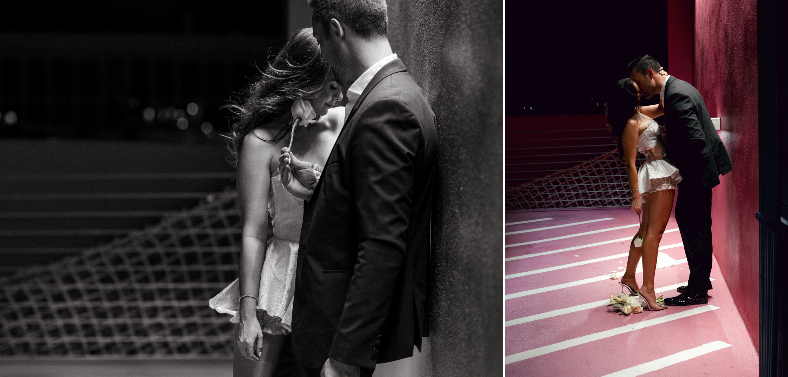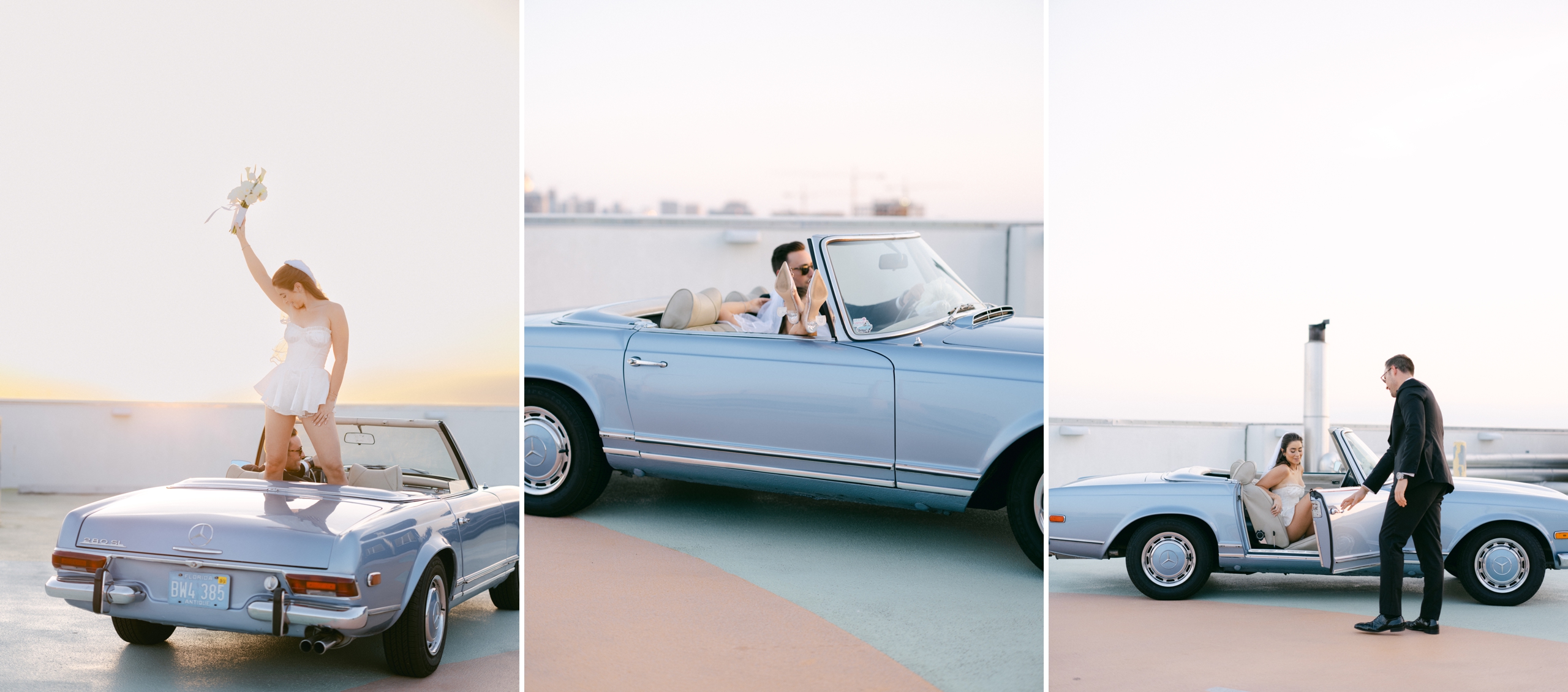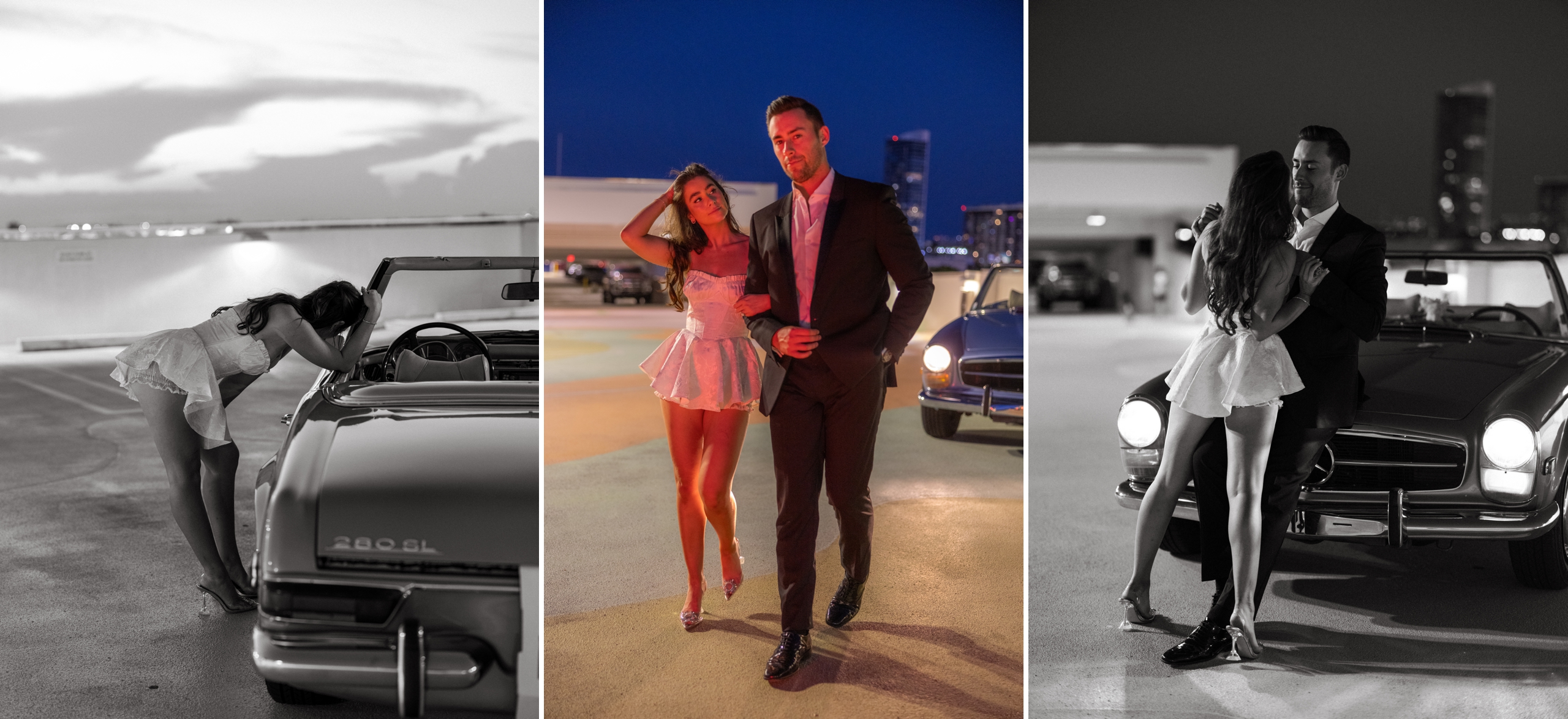 Talk about red-hot! Alessandra & Zach’s engagement session brought all the spice to Miami! The two strolled to a rooftop parking garage and danced to their favorite songs. As the sun was setting, golden rays cascaded over the pair while they boarded a vintage Mercedes. Even after it got dark, we didn’t stop shooting! The neon lights of the city and the car’s headlights illuminated the rooftop as the two swooned over each other; the energy between them was electric!