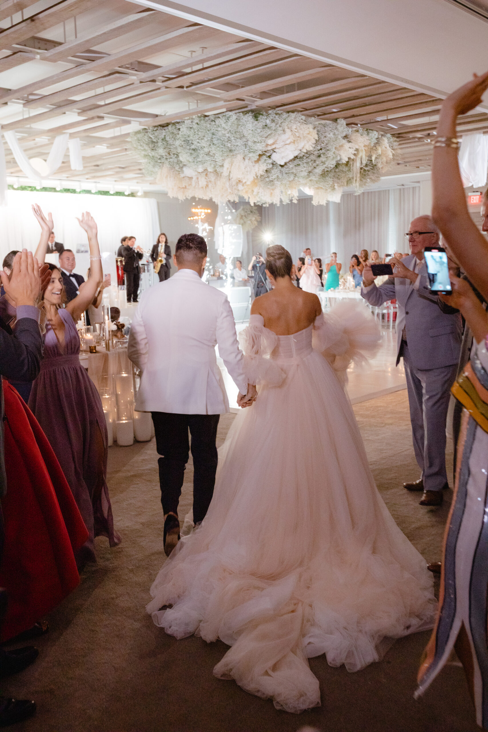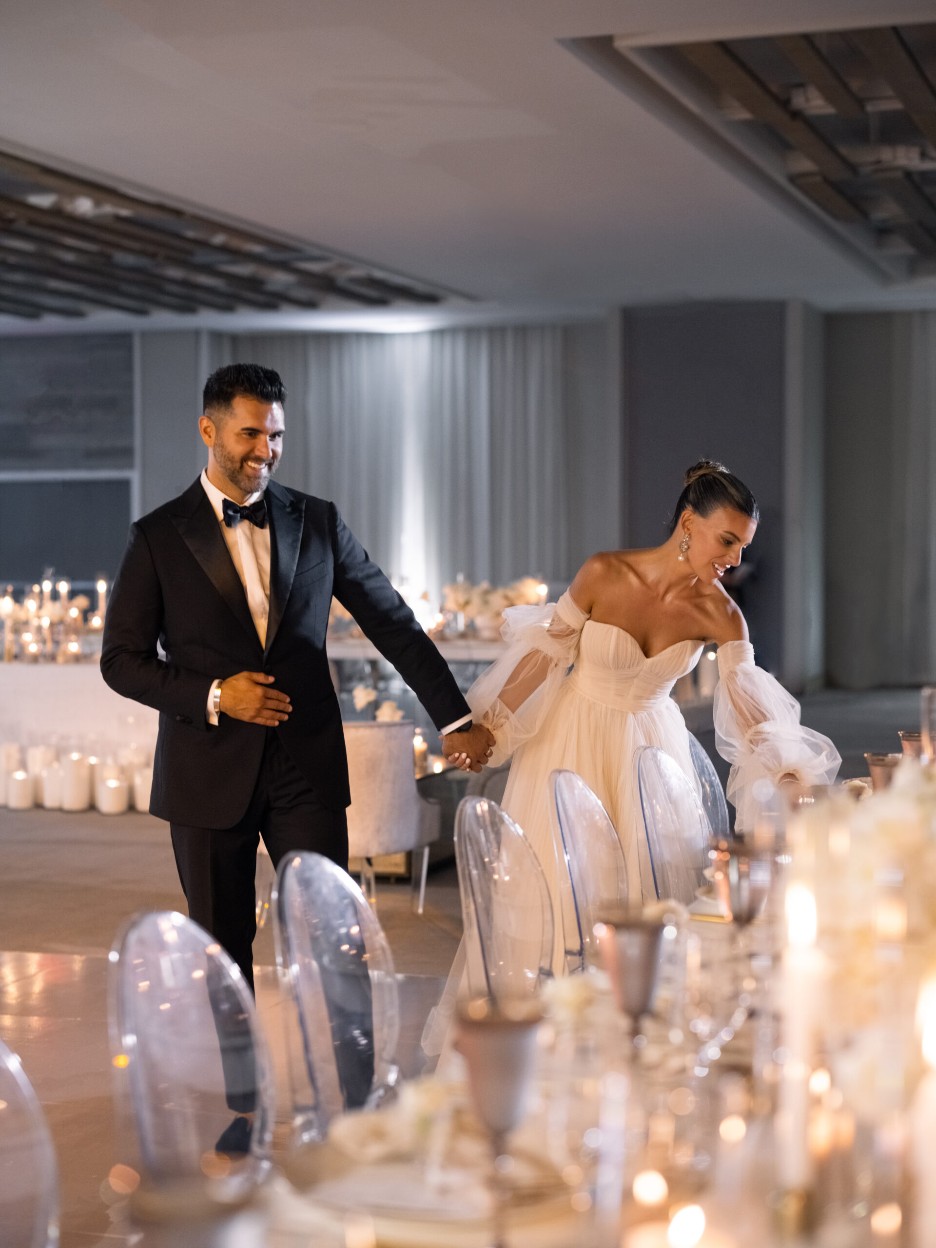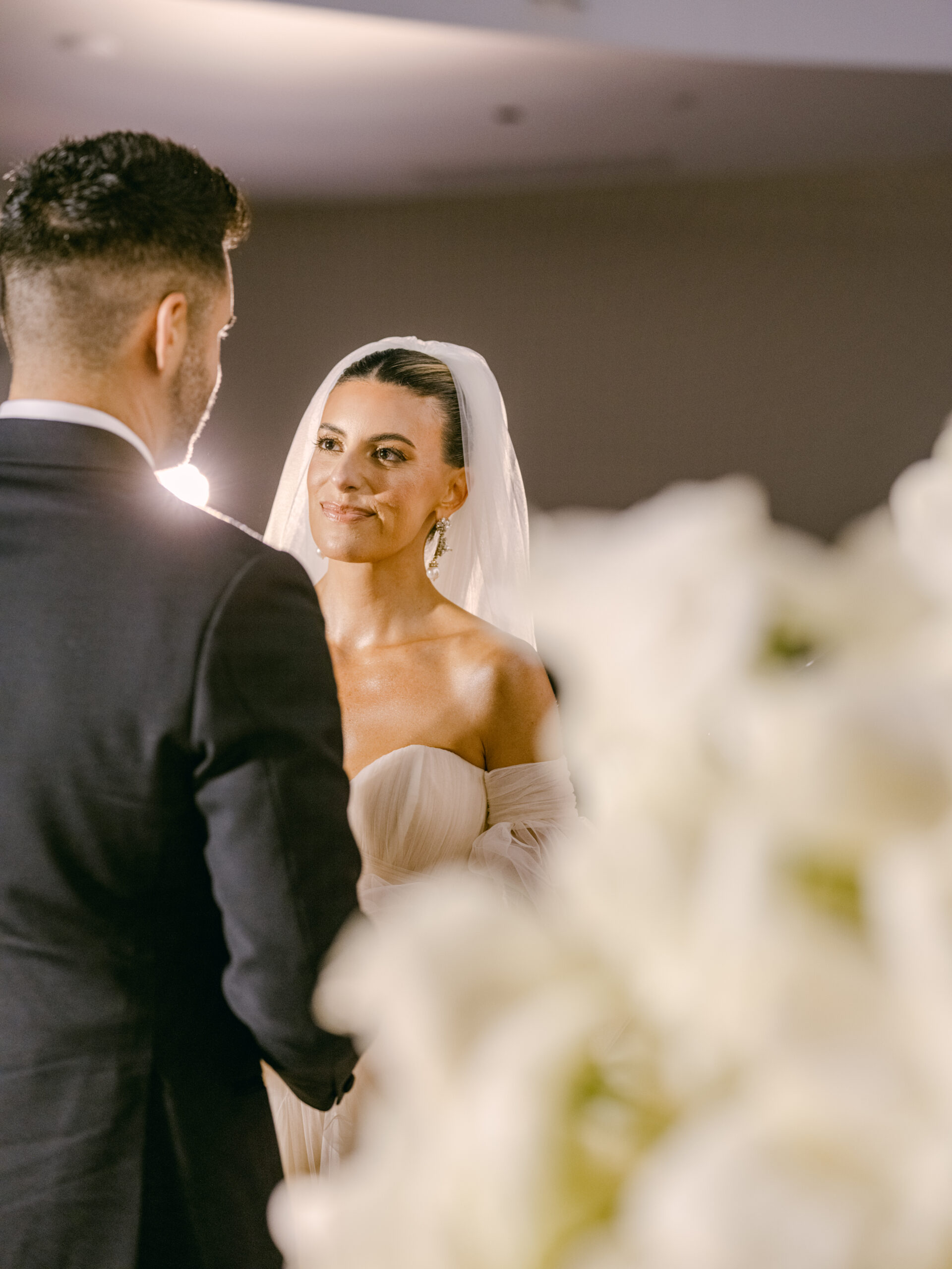 We had the pleasure of capturing a beautiful wedding held at the stunning 1 Hotel South Beach. The ceremony and reception took place indoors, providing a perfect setting for the happy couple to exchange vows. However, the first look was done outside on a particularly windy day, which provided an unexpected, yet magical photo opportunity as the bride’s dress gracefully swayed in the wind.