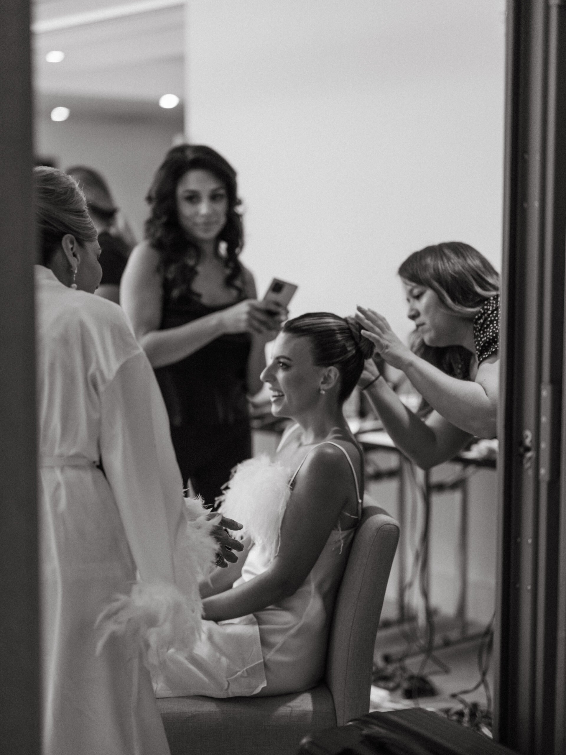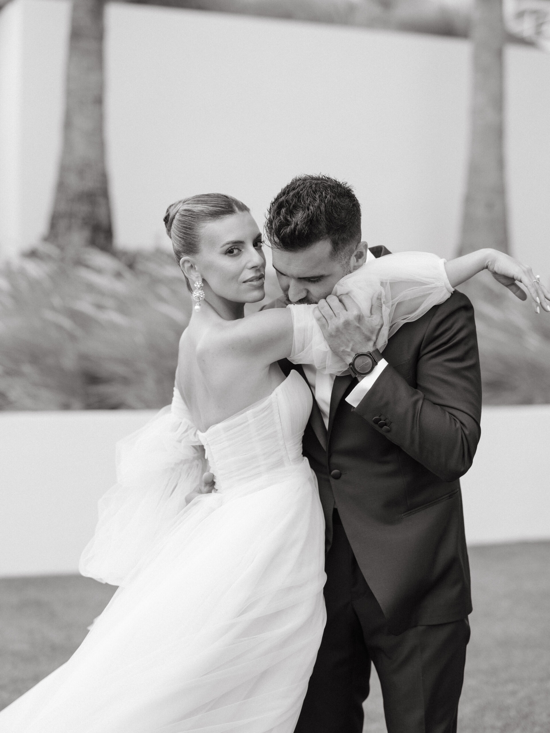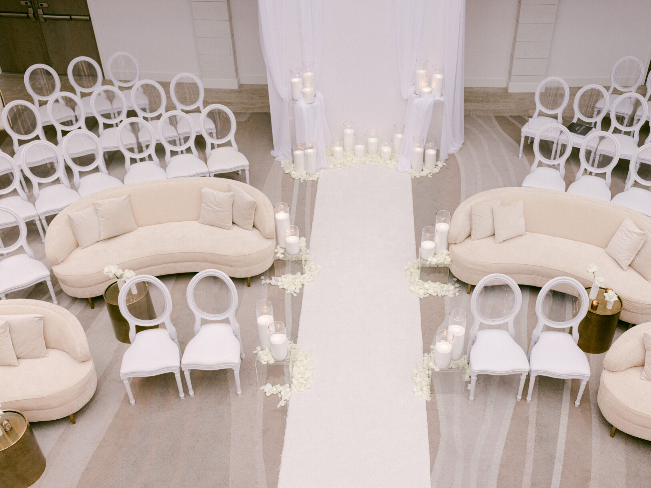We had the pleasure of capturing a beautiful wedding held at the stunning 1 Hotel South Beach. The ceremony and reception took place indoors, providing a perfect setting for the happy couple to exchange vows. However, the first look was done outside on a particularly windy day, which provided an unexpected, yet magical photo opportunity as the bride’s dress gracefully swayed in the wind.
