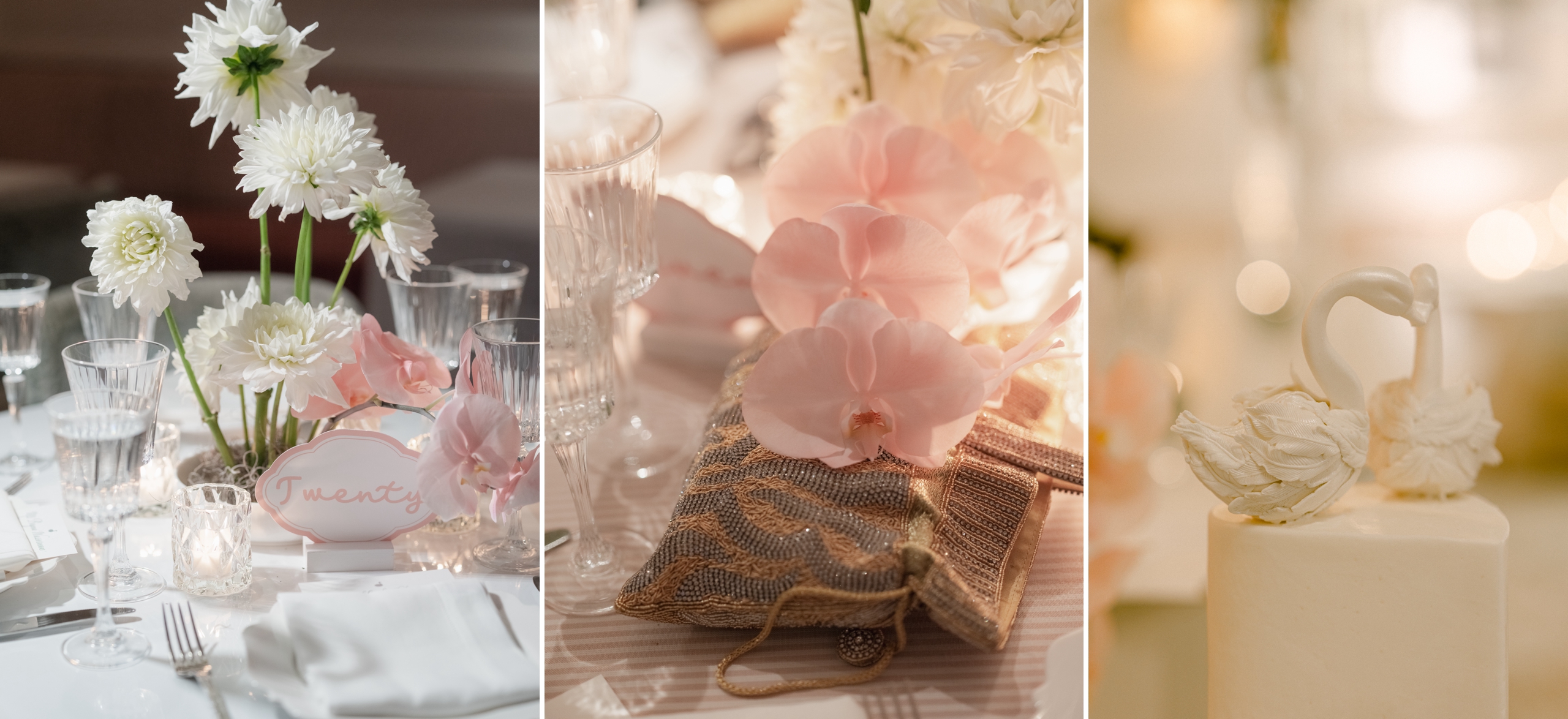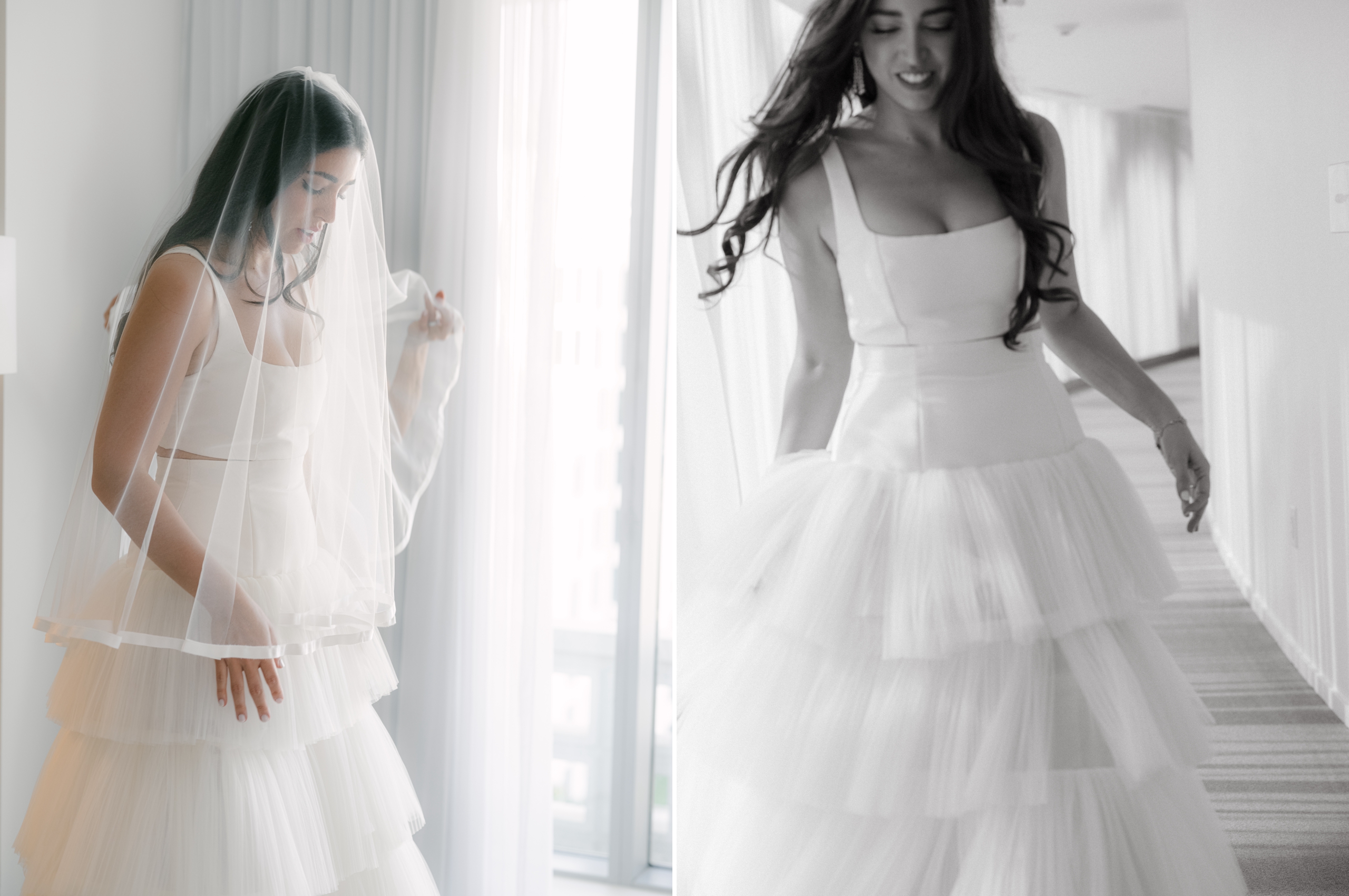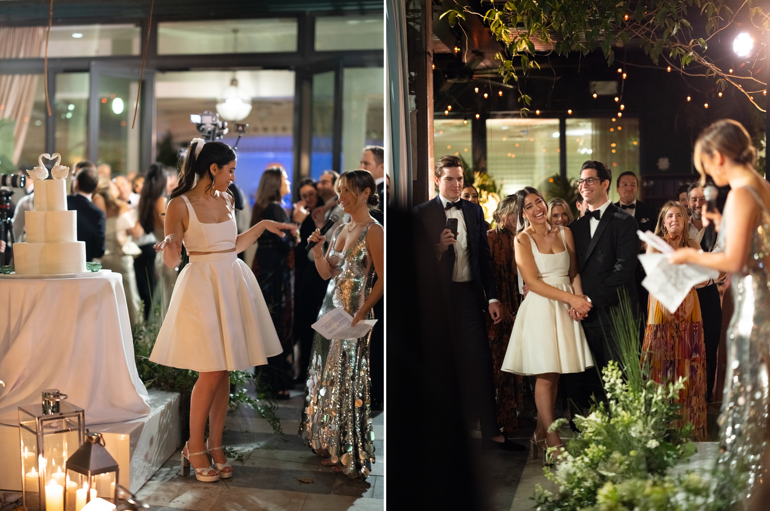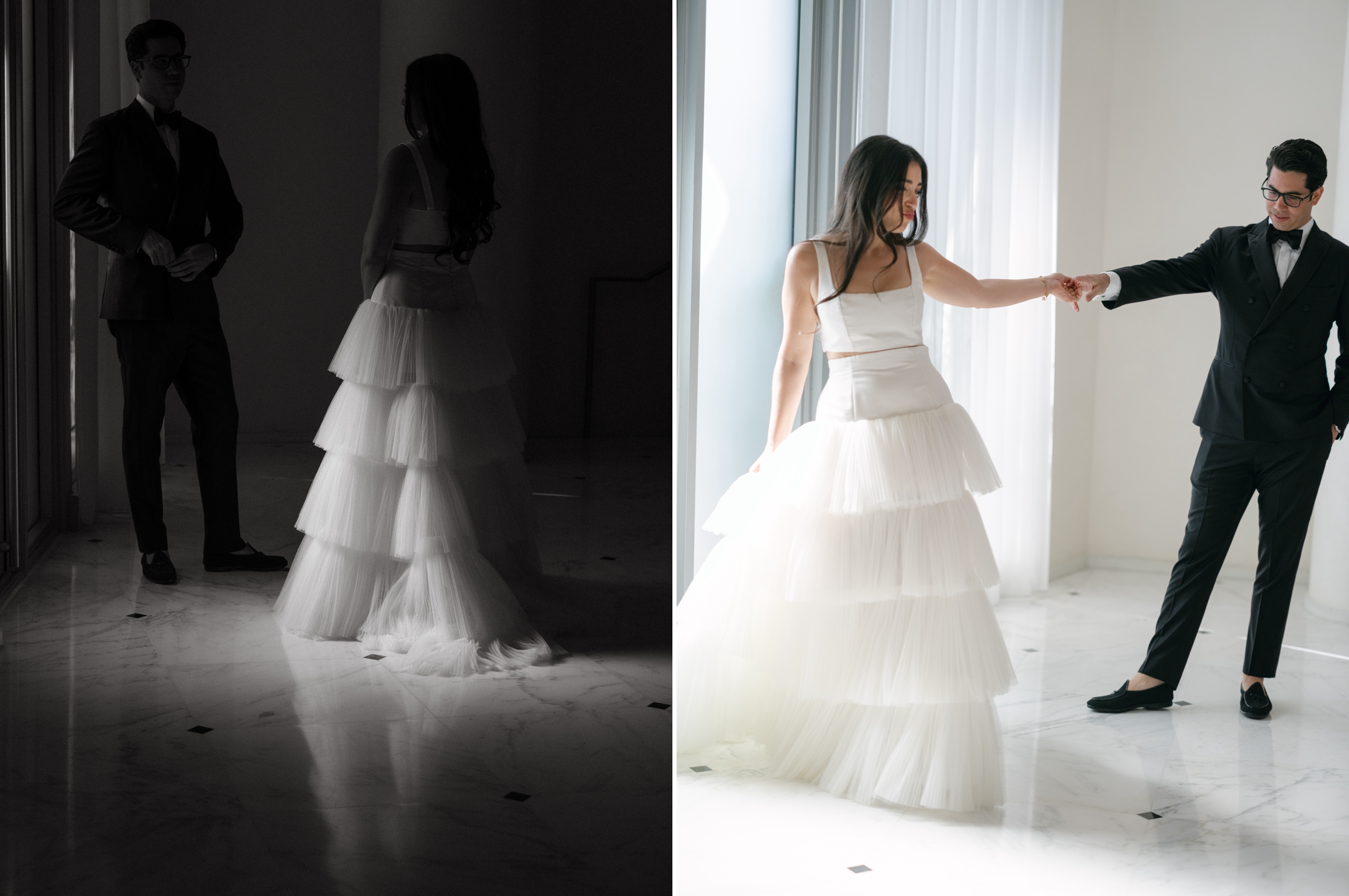 Amanda and Jonathan’s wedding day was swoon-worthy! A tribute to generations of love, Amanda’s wedding dress was handmade by her mother, Olga. As she walked down the aisle at Institute of Contemporary Art, we loved seeing the gorgeous outfit made with so much intentionality. At the lovely outdoor ceremony, the pair exchanged their vows and we headed to the reception at Swan: a classy restaurant in the heart of Miami. The soft pastel decor and candlelight created an immersive experience, transforming the restaurant into a fairytale! Amanda’s two reception dresses paid homage to timeless styles, featuring a poodle skirt-gown and flapper-esque vest for her final look. The attention to detail was so tasteful and elegant, we were honored to join in on their special wedding weekend!