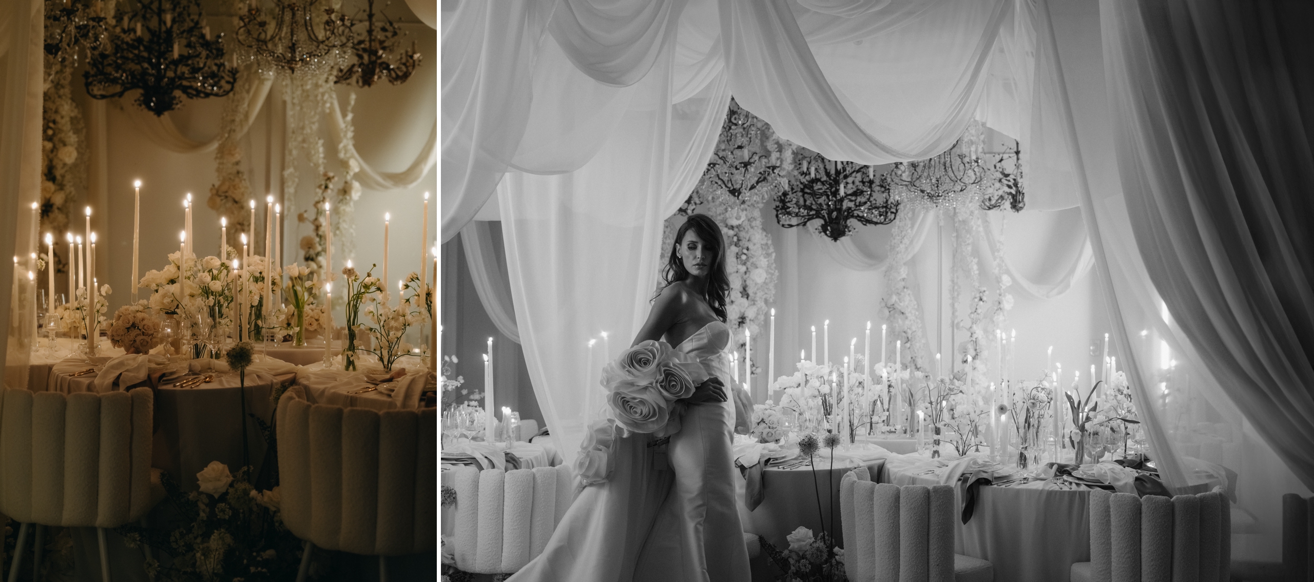 This editorial shoot with Stephanie Marion was the perfect medley of creatives. Transforming a studio space into a candlelit dream showed us the power of bringing ideas to life. Browse through our gallery to see the stunning touches to this editorial shoot that these great minds added.