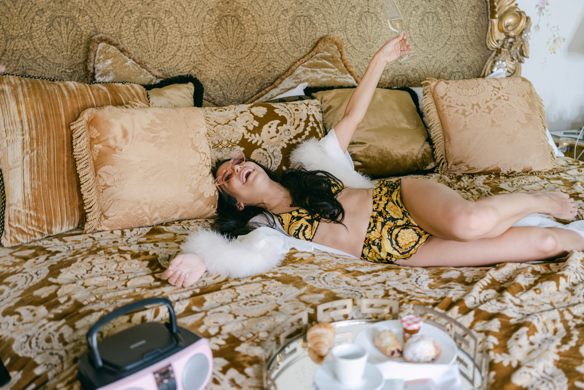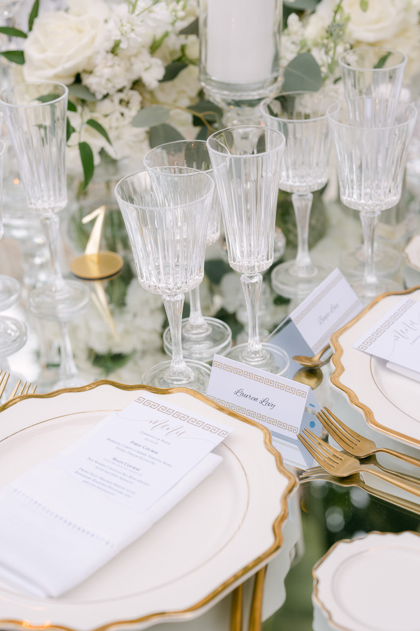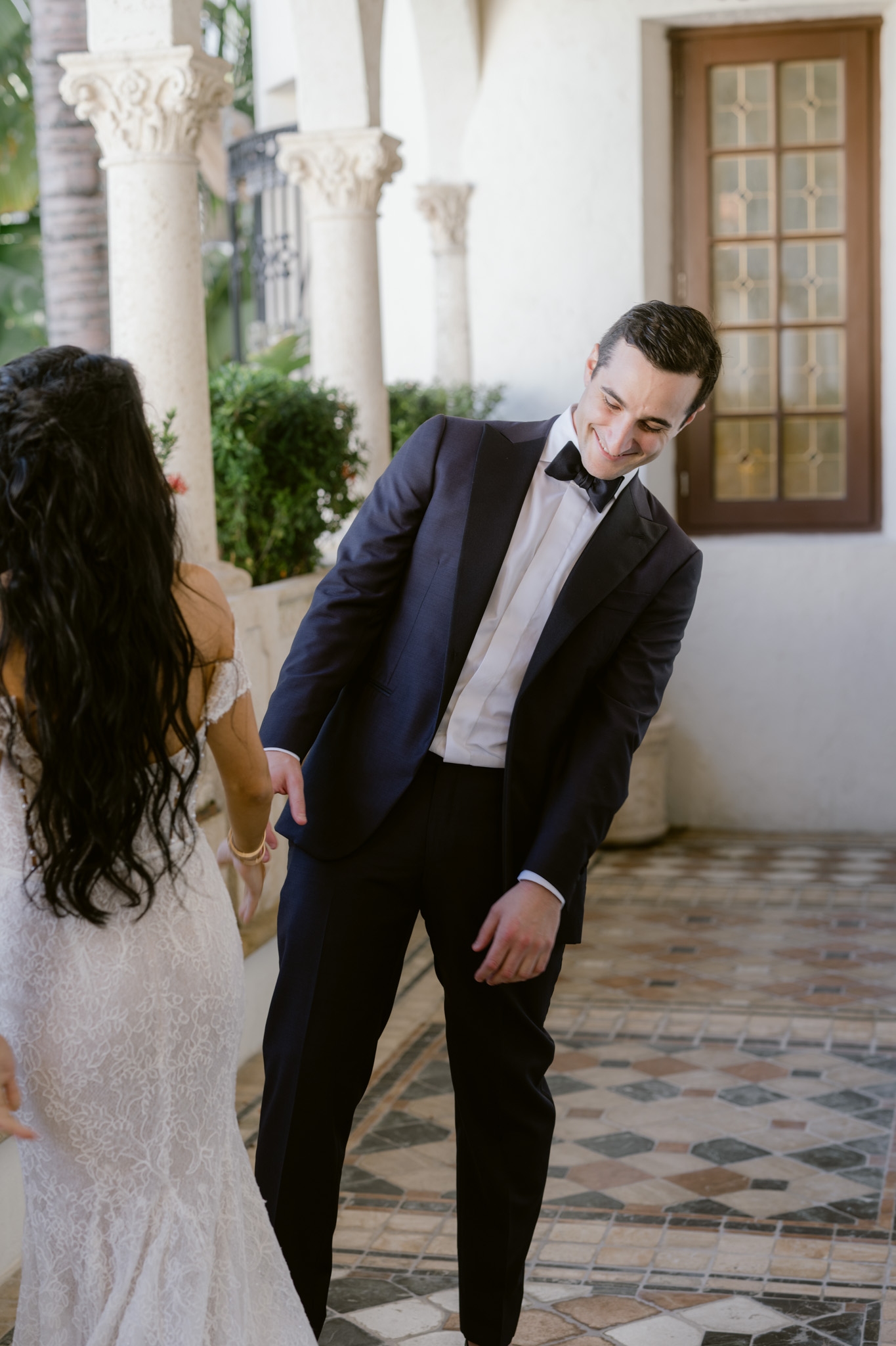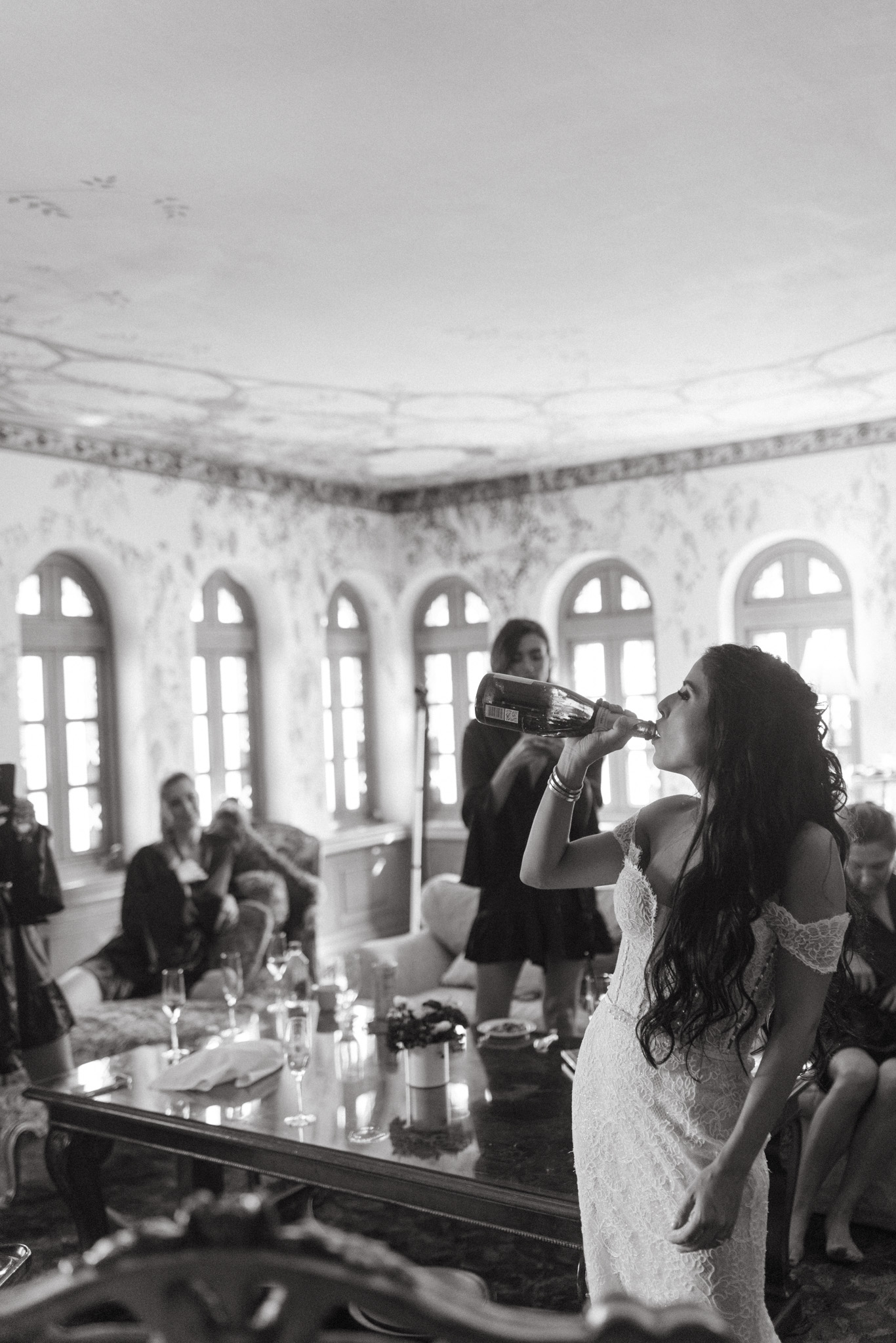 There was no shortage of designer apparel to go with the equally opulent wedding that took place at the Versace Mansion. Consuelo donned a Versace top and bottom for getting ready complete with pink Versace slippers and Gilda & Pearl robe from Harrods. She slipped into her Lee Petra wedding gown with Jimmy Choo shoes for the ceremony which took place in the courtyard of the mansion. For the reception in the backyard, the famous Versace tiled pool was covered in chic clear acrylic where guests danced and dined. Here is where Consuelo changed into her second Lee Petra dress with a pair of stunning Renee Caovilla shoes that took her well into the night.