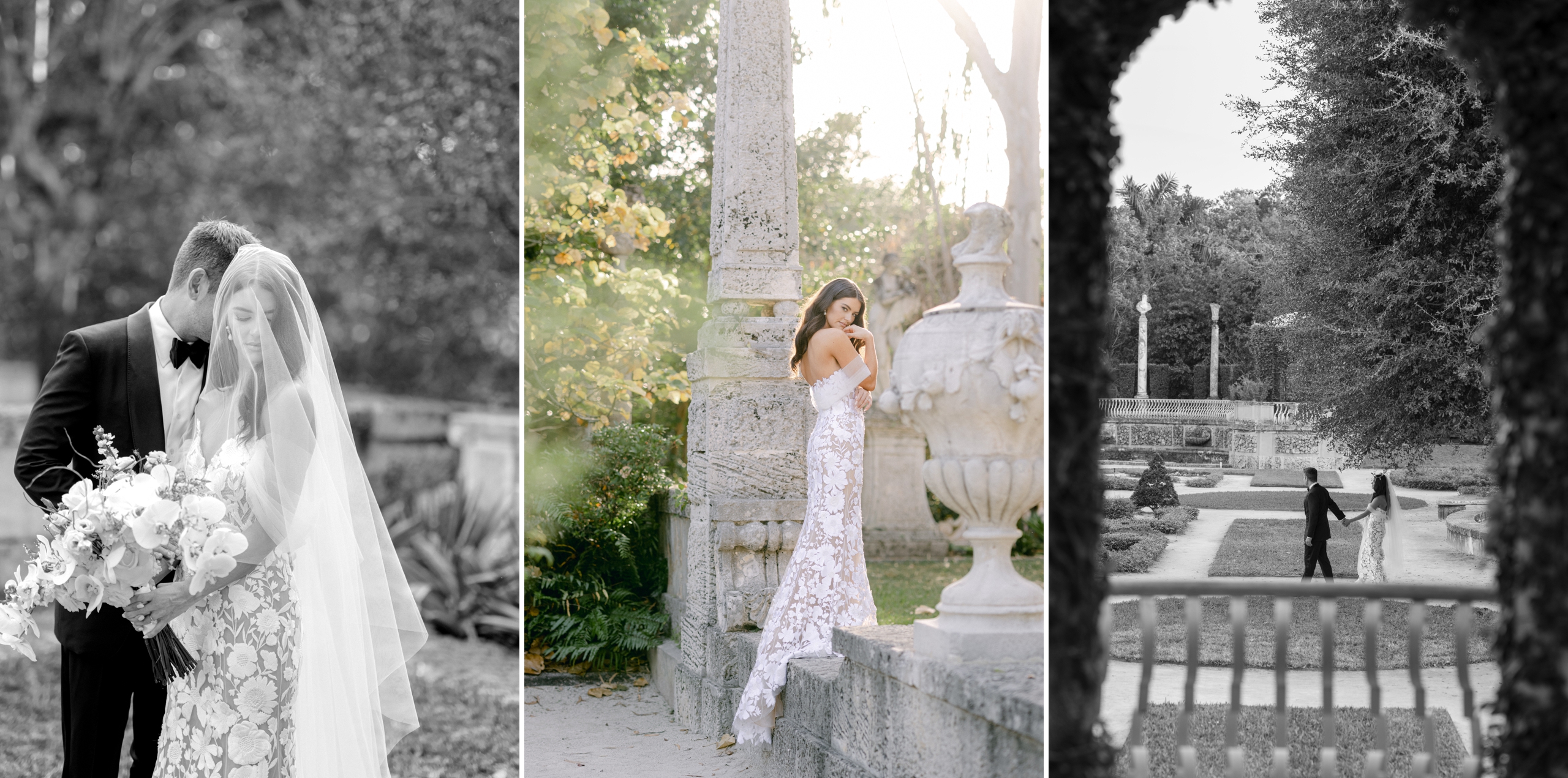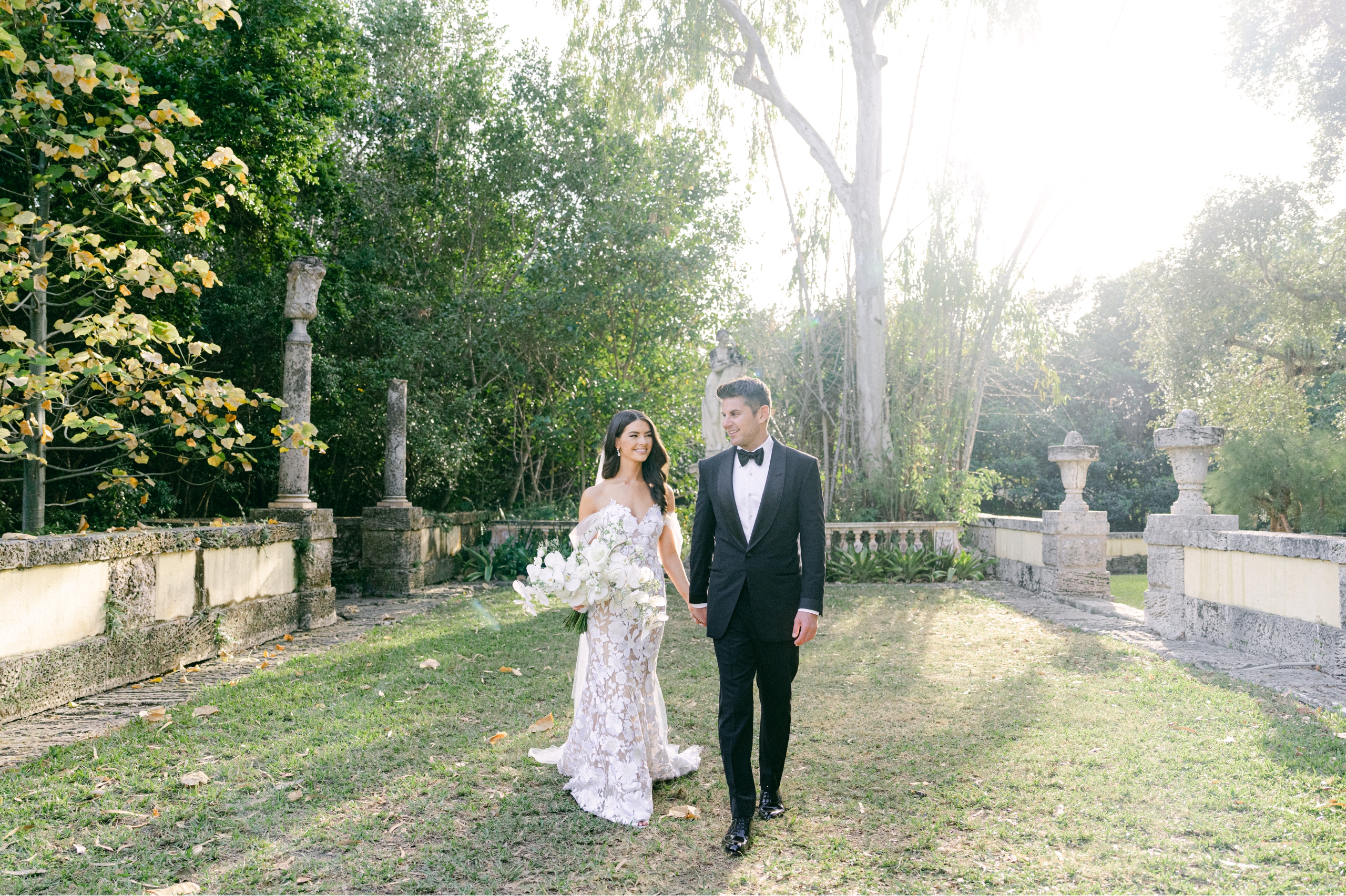 The ceremony and reception were held at the historic Vizcaya Museum and Gardens, which offered a picturesque and grandiose setting for the special occasion. The highlight of the day, and my personal favorite moment to capture, was when the couple took a leisurely stroll through the lush gardens. The beautiful, cool weather only added to the already idyllic day. Overall, it was an unforgettable and breathtaking event that we were honored to photograph.