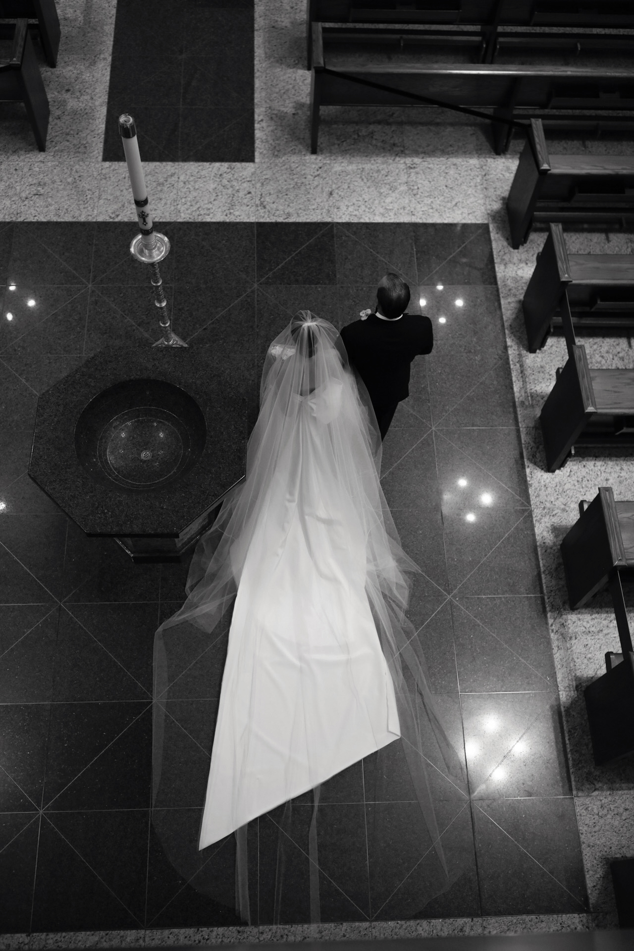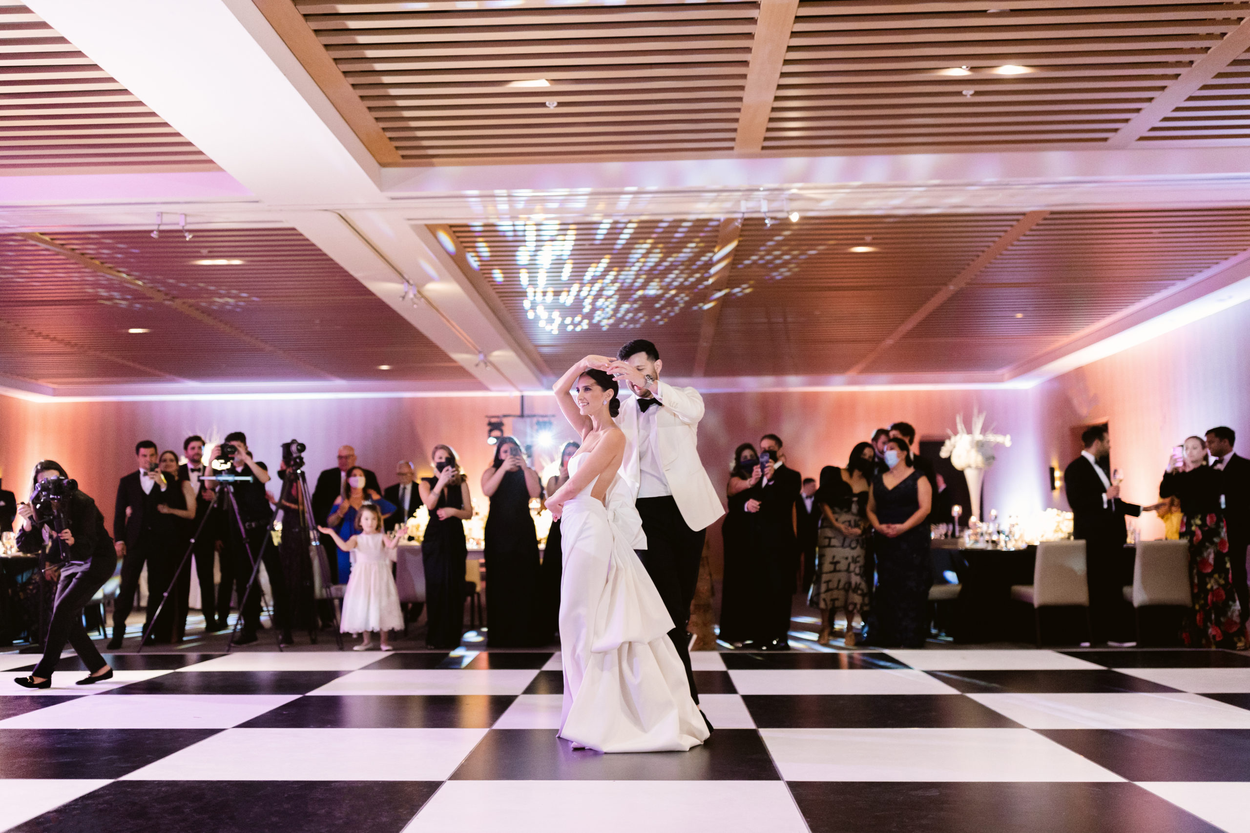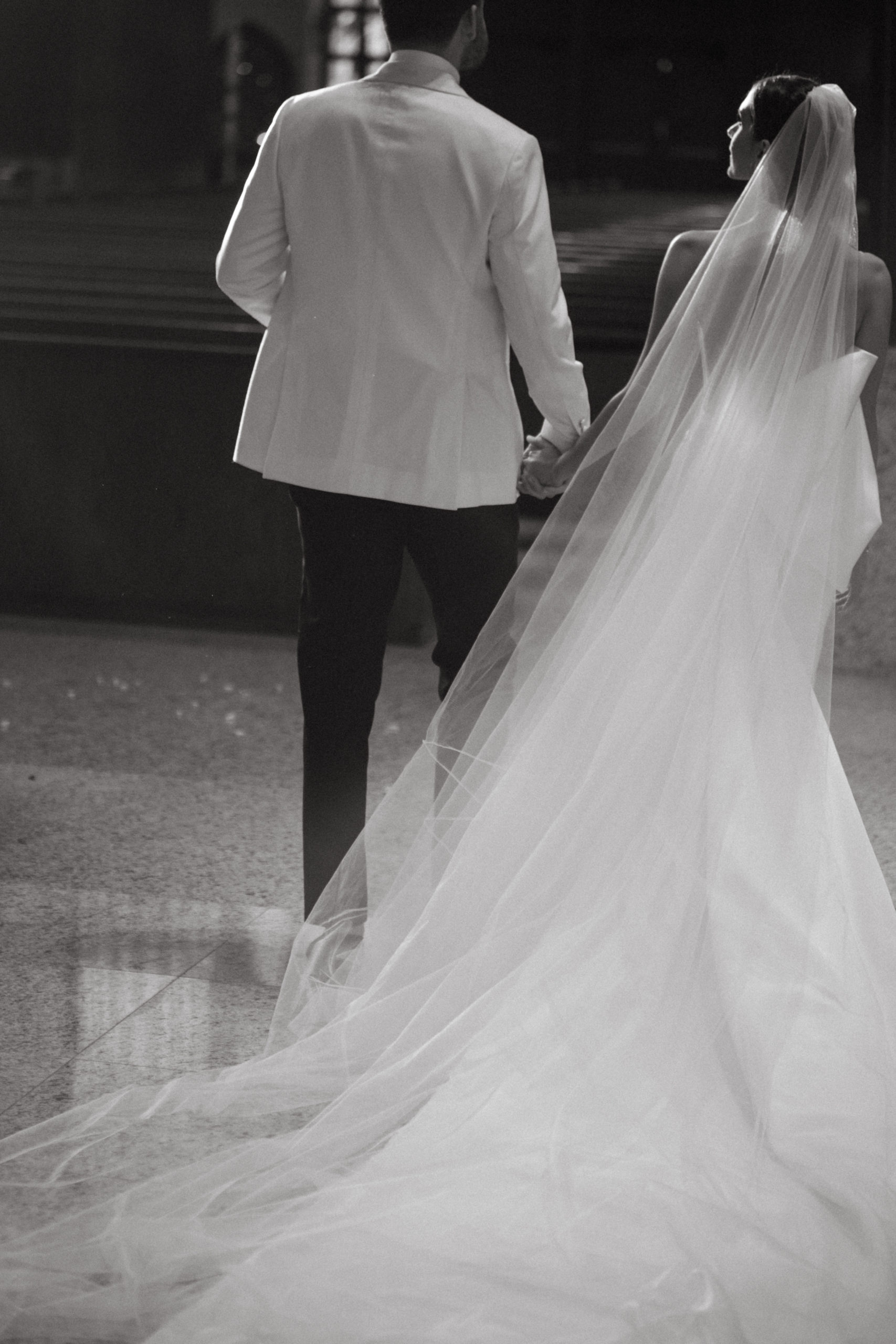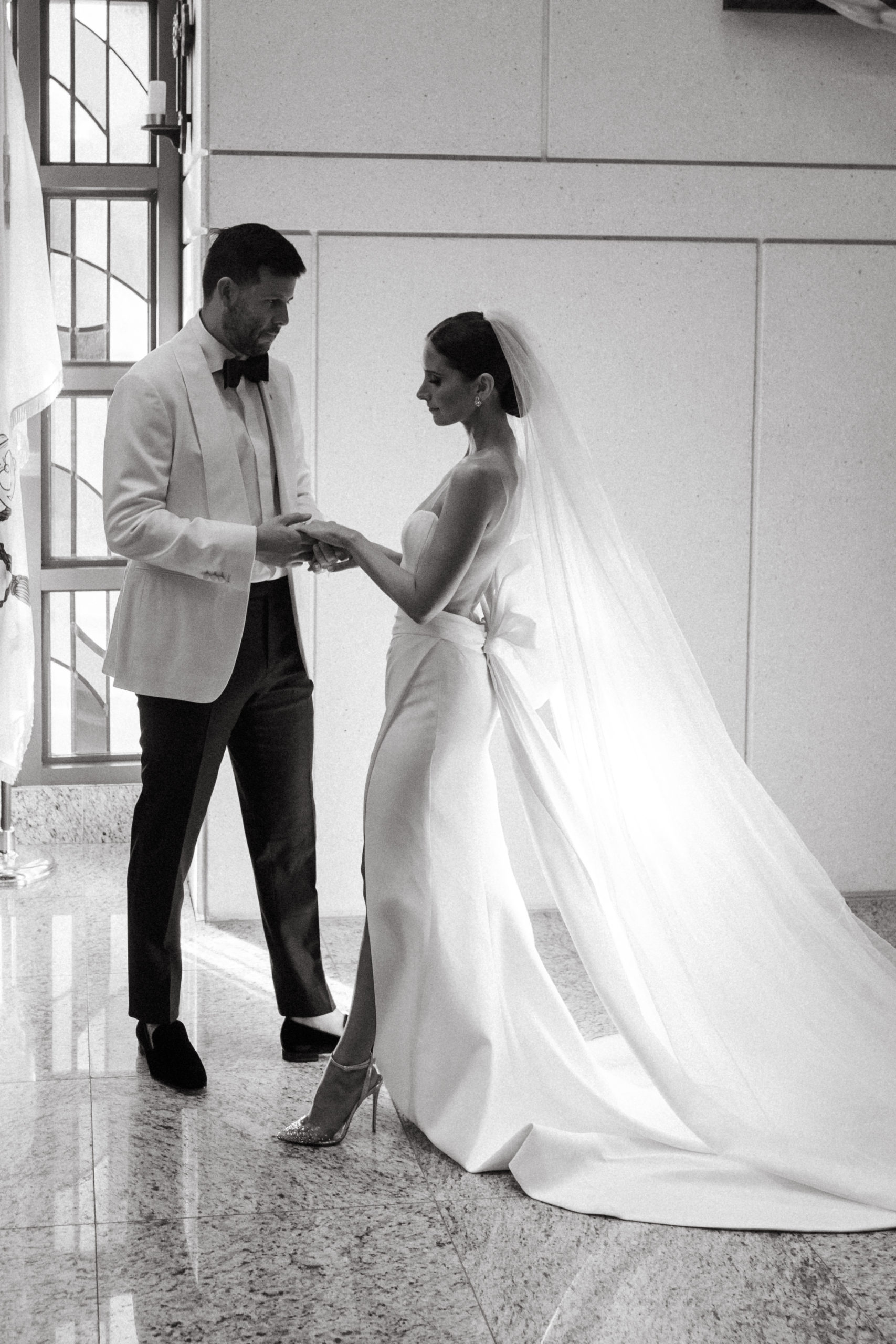 We started the day at the Edition Hotel for the groom getting ready and for the bride, her parents’ home. Katheryn surrounded herself with the best bridesmaids, some of which have been our past brides. The energy and love was contagious right from the start. Both Katheryn and Felix have this understated style about them. They are both elegant and refined, just watching their body language was enough for us to be inspired. They had a Catholic ceremony at the Church of The Epiphany and their wedding reception was at The Edition Hotel in Miami Beach, FL. We really got so much eye candy this day. At the church we used some dramatic light that was pouring in from the stainless windows for some creative portraits, then we had the most serene beach views when we got to the reception venue. They had a black and white theme throughout the wedding. We especially loved the black and white checkerboard dance floor. This is definitely a wedding that seemed to have all the right ingredients, and we hope you agree.