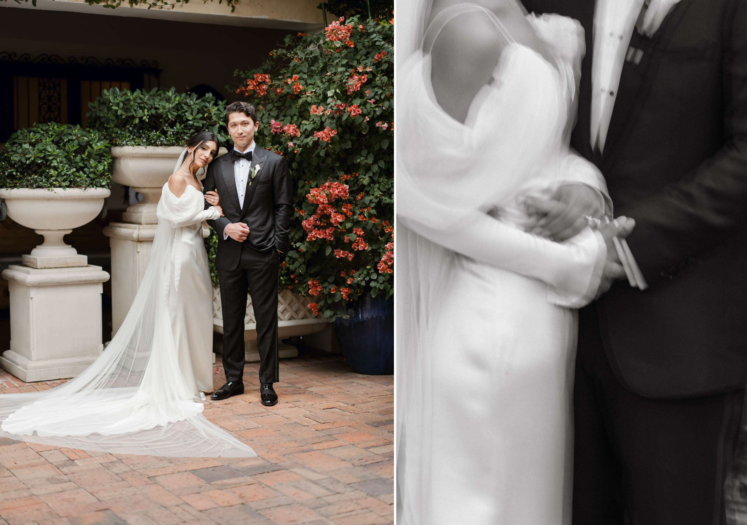 Their wedding ceremony and reception were hosted indoors and the cocktail hour took place in the outdoor patio surrounded by tropical plants and bougainvillea in all shades of pink and orange. We chased the light all day, finding the perfect spots as the lovebirds stole moments to themselves all throughout the day. The best part of Leila and Robbie’s wedding was seeing the couple surrounded by the ones they cherish the most as they stepped into forever. We soaked in every detail of their day, it’s one we will never forget!