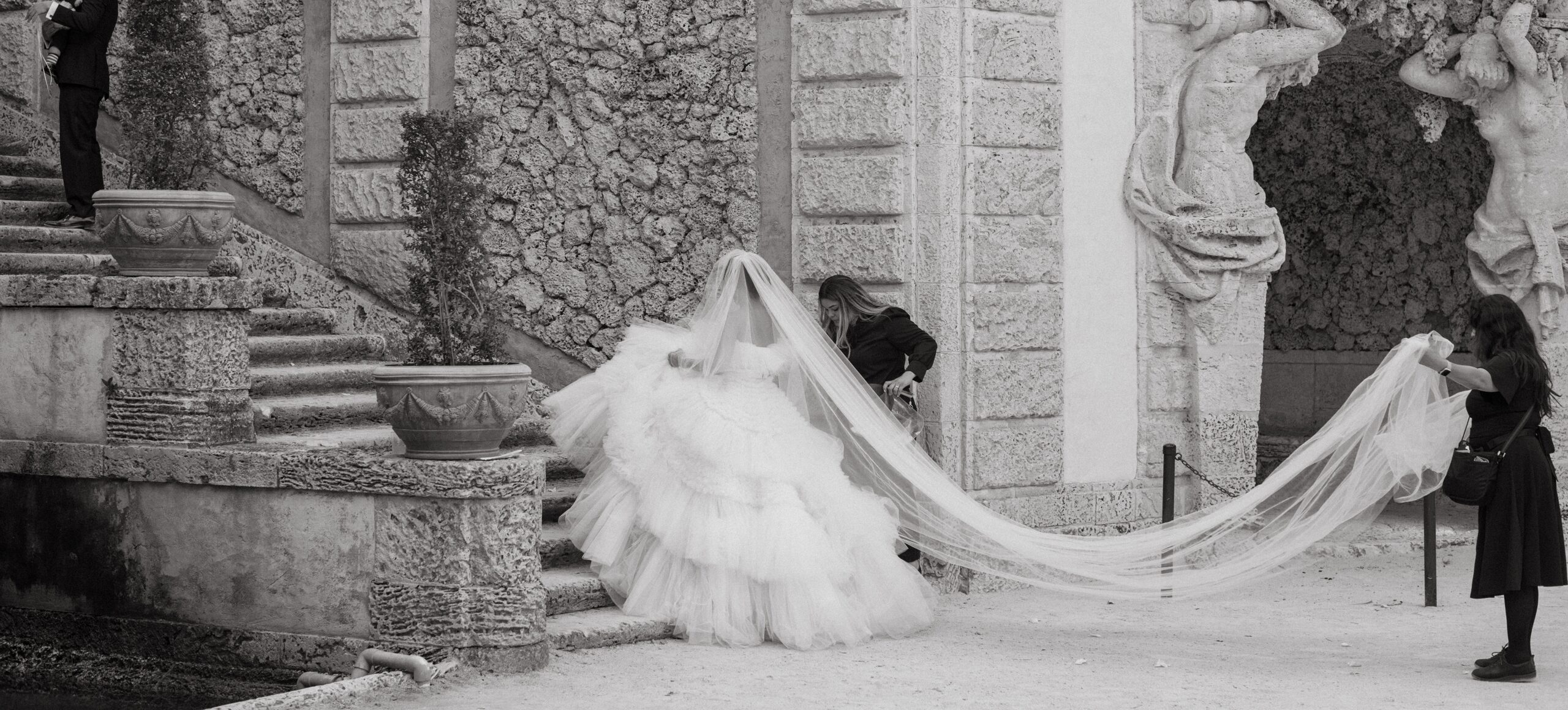 Sheerin and Sam’s wedding day was a mixture of glamorous, fun, and sophisticated. The pair tied the knot at the stunning Vizcaya Museum and Gardens, the perfect venue for their Persian ceremony. The lavish details in every portion of this day were to die for! Sheerin got ready alongside her bridesmaids as she changed into one of the most stunning wedding dresses we’ve ever seen. The couple did their first look with their bridal party, bringing a fresh new spin on this traditional moment. We had all the feels watching their bridal party get teary-eyed and cheer them on!