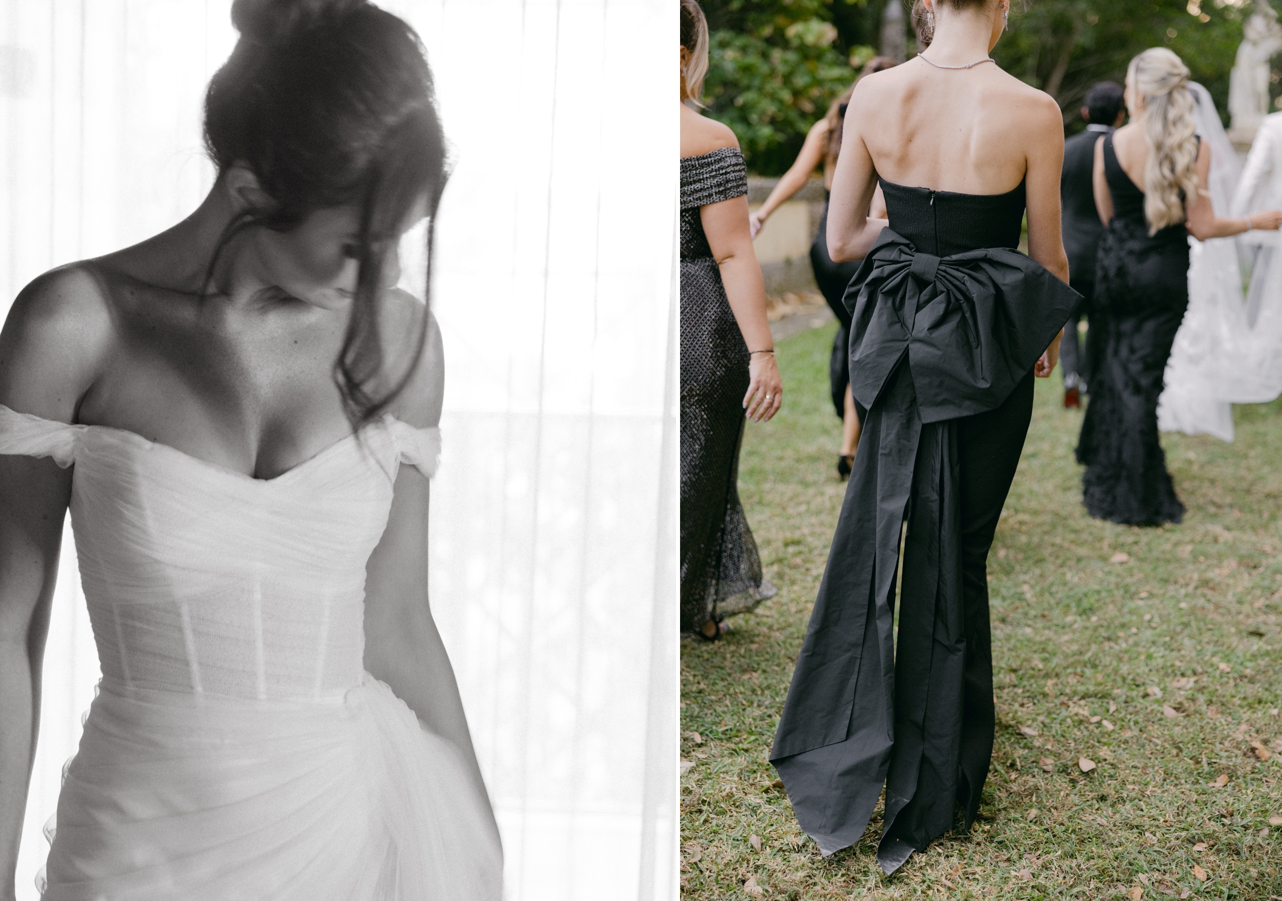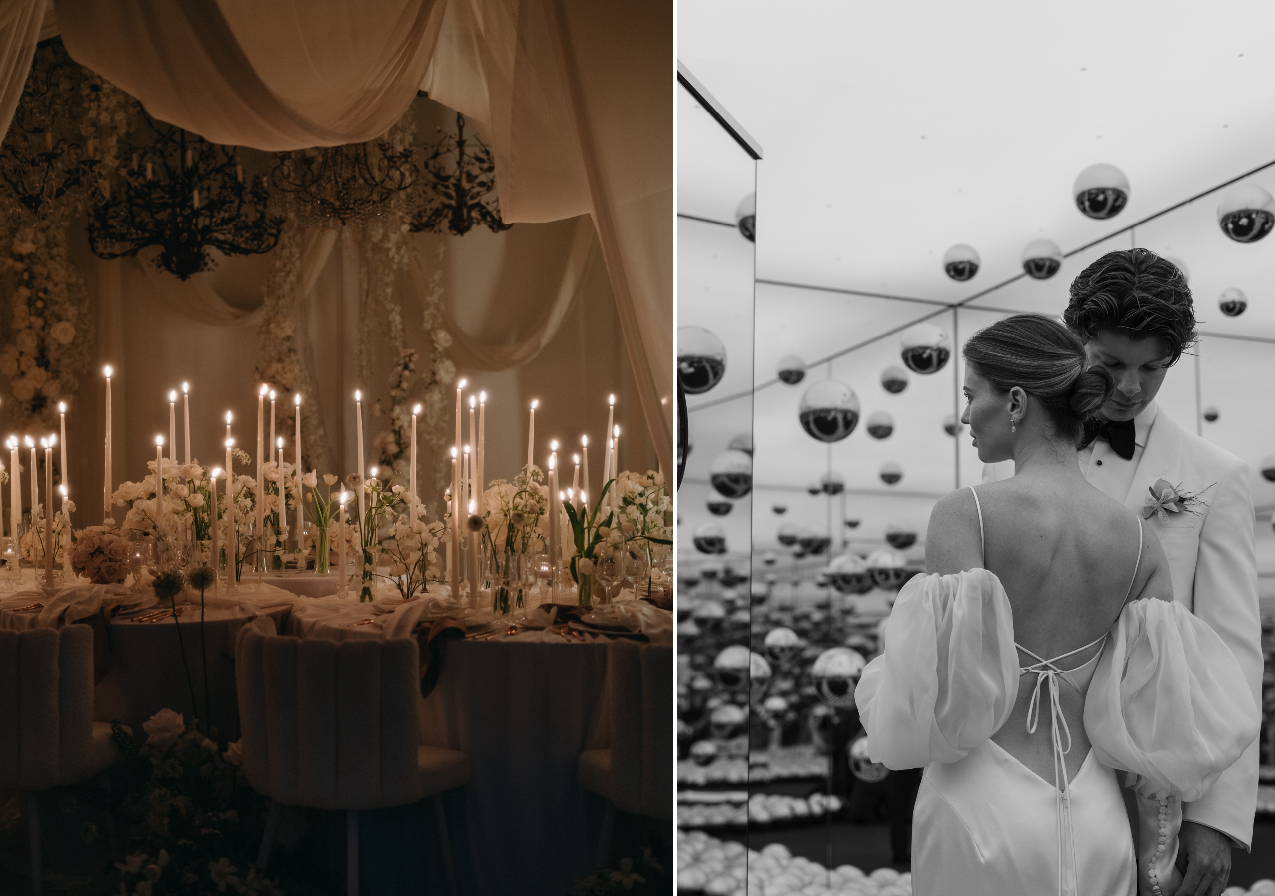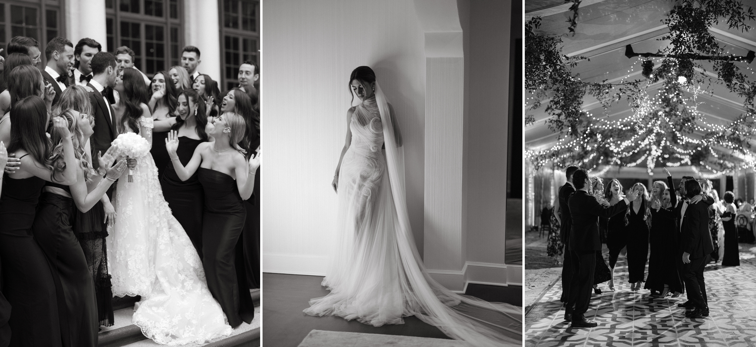 This season, our fall wedding edit draws from the elegance and drama that make autumn unforgettable. Think black-tie bridal parties that exude timeless sophistication, fashion-forward brides redefining tradition, candlelit reception dinners layered with intimacy, and moody details that set the tone for a chic celebration. Black-and-white portraits bring it all together with striking, artful simplicity—capturing a style that feels both modern and enduring. Take a look below to see the images inspiring us right now and setting the mood for fall weddings at their most refined.